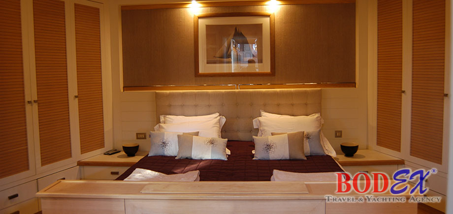 ..is a 7 star royal - vip gulet built in Bodrum. It is 32 meters long and 8,00 meters wide. On the ship you have 1 Master cabin, 2 Twin bed cabins and 2 Double bed cabins with own toilet and shower. Of course, all cabins are air-conditioned (depending on the ship, the duration of the air-conditioning can change).