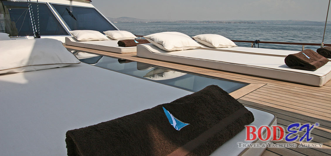 GETAWAY departs from Göcek. By arrangement it is also available from Bodrum, Fethiye or Marmaris. More information about the ship can be found below..